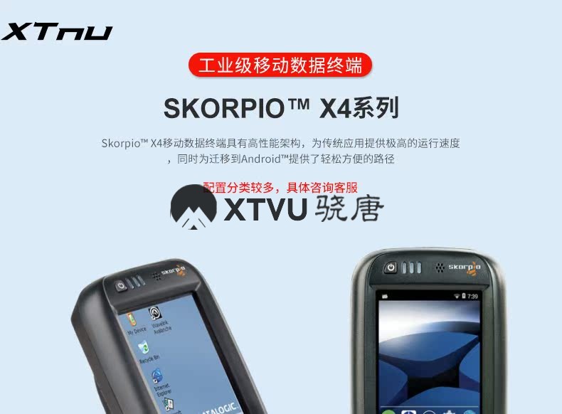 Skorpio X4是一款特别为店铺货架和店内后仓等零售环境的移动商业解决方案而设计的坚 固耐用的移动数据终端。在业界拥有人体 工学设计, Skorpio X4在保持了设备可靠性和耐用性的前提下降低了操作人员的疲劳度,同时在抵御恶劣环境、抗跌落、抗震动和抗滚落方面有表现。枪柄式机型拥有行业内耐用和舒适的手柄。