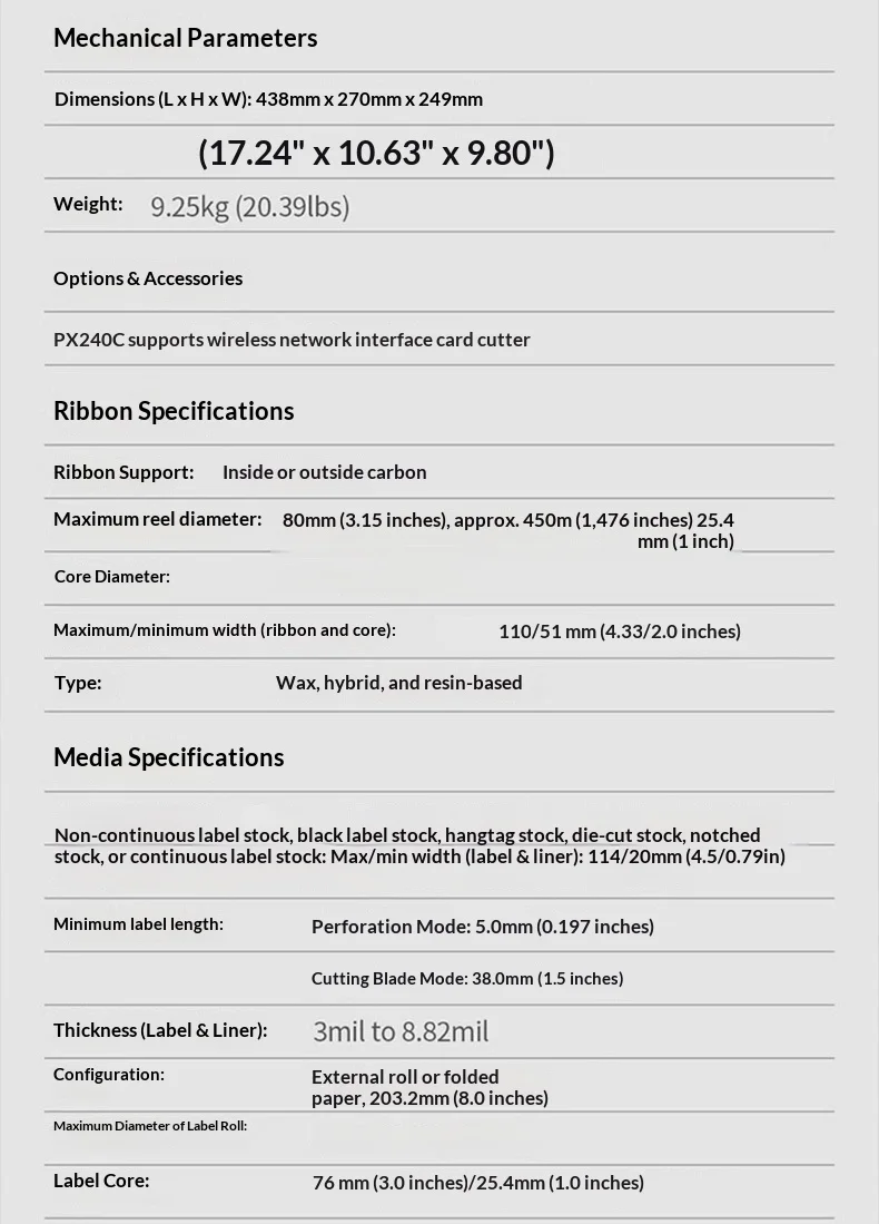 Honeywell PX240 Industrial Label Printer 203/300dpi Cotter Plate Adhesive Label Barcode Water Washing Mark