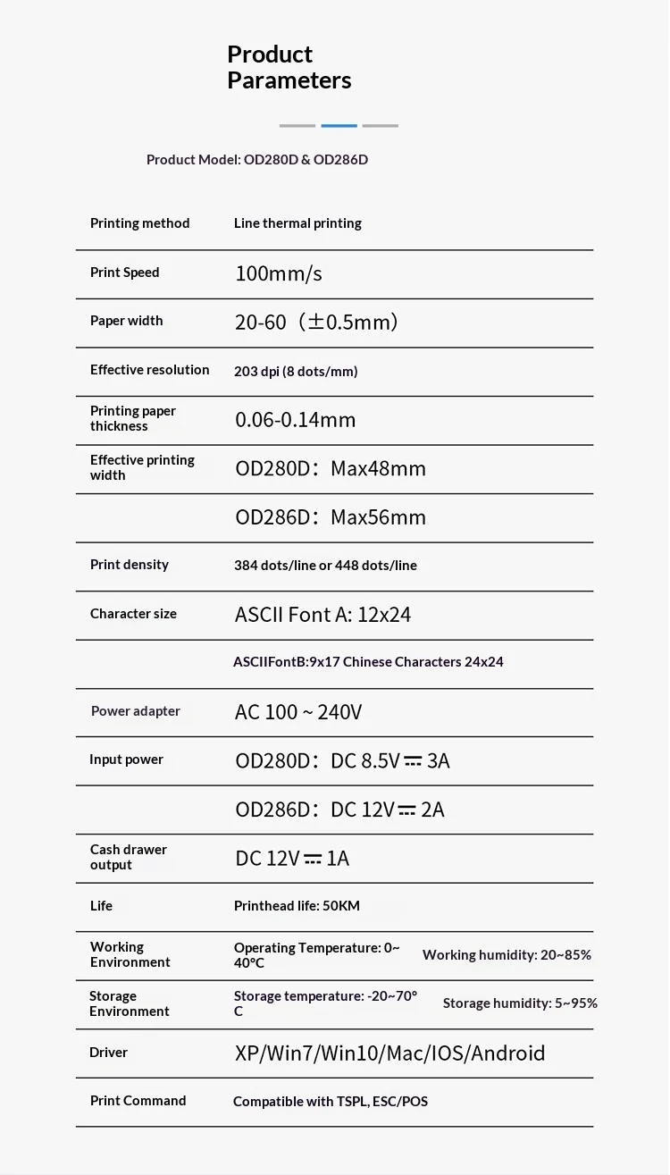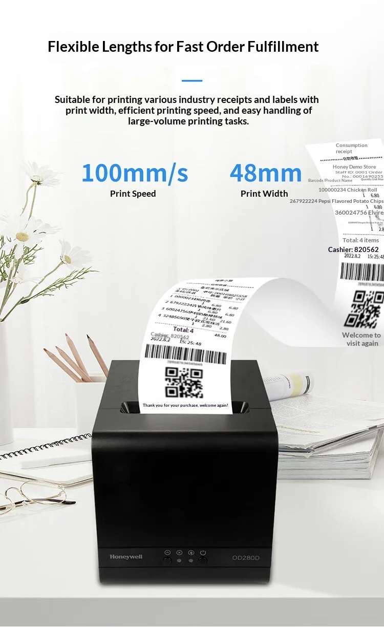Honeywell OD280D Black Thermal Label/Take-out Receipt Printer USB Connection Super 48mm Paper Size 100mm/s Print Speed