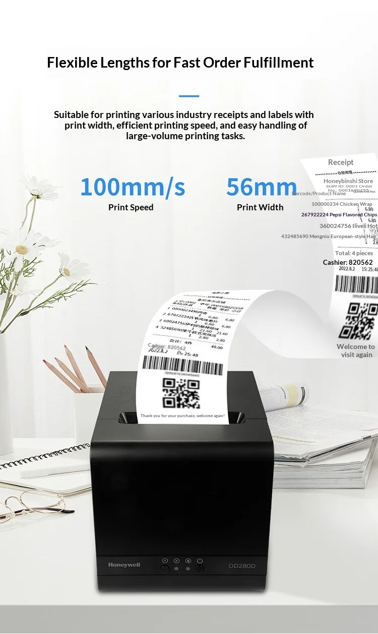 Honeywell OD286D Black Thermal Label/Take-out Receipt Printer USB/ Connection 56mm Paper 200dpi Super